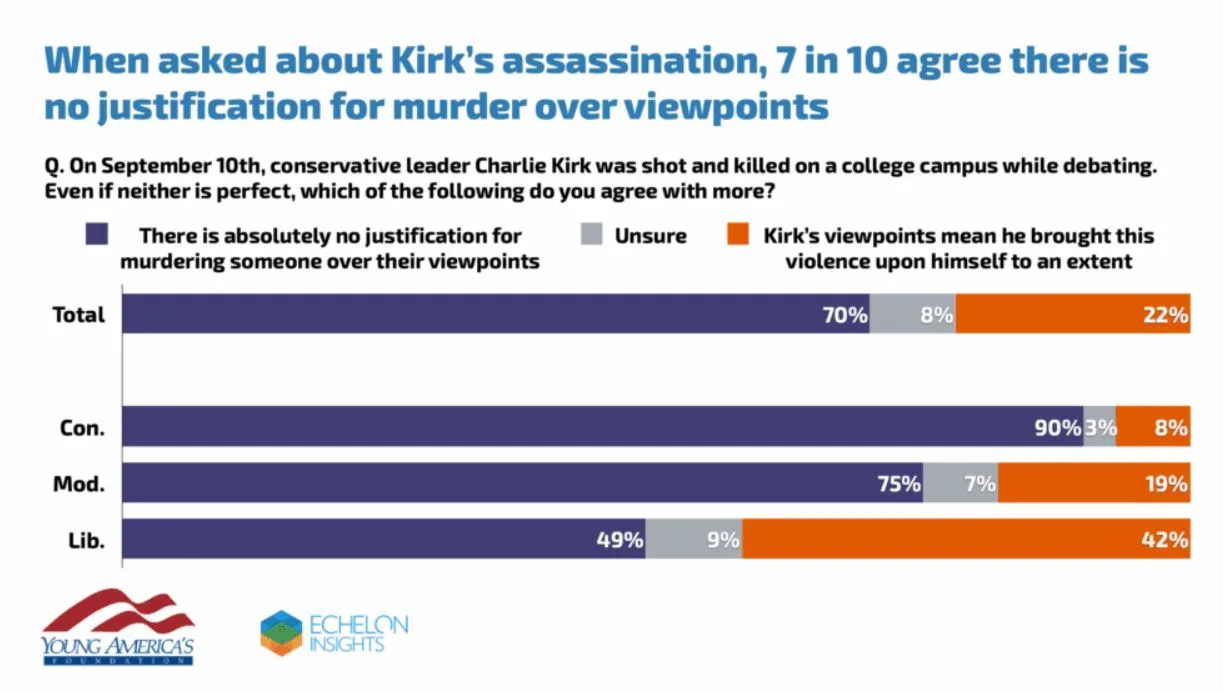 Conservative Charlie Kirk’s viewpoints mean he brought violence upon himself to an extent, according to 42 percent of young liberal voters polled in a newly released survey.
